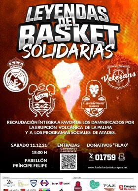 Leyendas del baloncesto de Real Madrid, FC Barcelona, CB Canarias y Basket Zaragoza se reúnen en Zaragoza para recaudar fondos para los afectados por el volcán en La Palma. Será el 11 de diciembre de 2021 en el pabellón «Príncipe Felipe». Entradas a la venta a 3 y 5 Euros. |