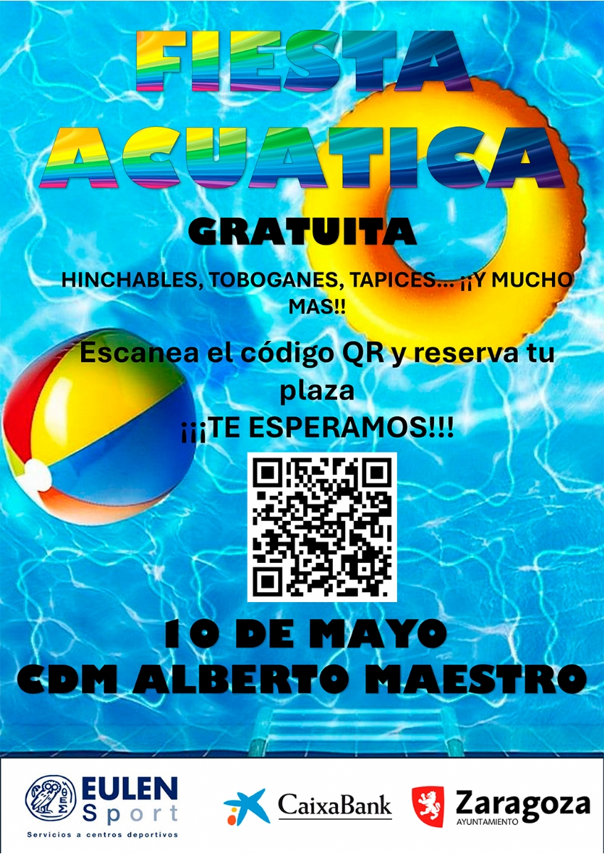 El sábado 10 de mayo de 2025, la piscina cubierta del CDM Alberto Maestro se trasformará en una zona de divertidos juegos acuáticos, hinchables y talleres lúdicos. Actividad gratuita, previa inscripción obligatoria. Plazas limitadas.