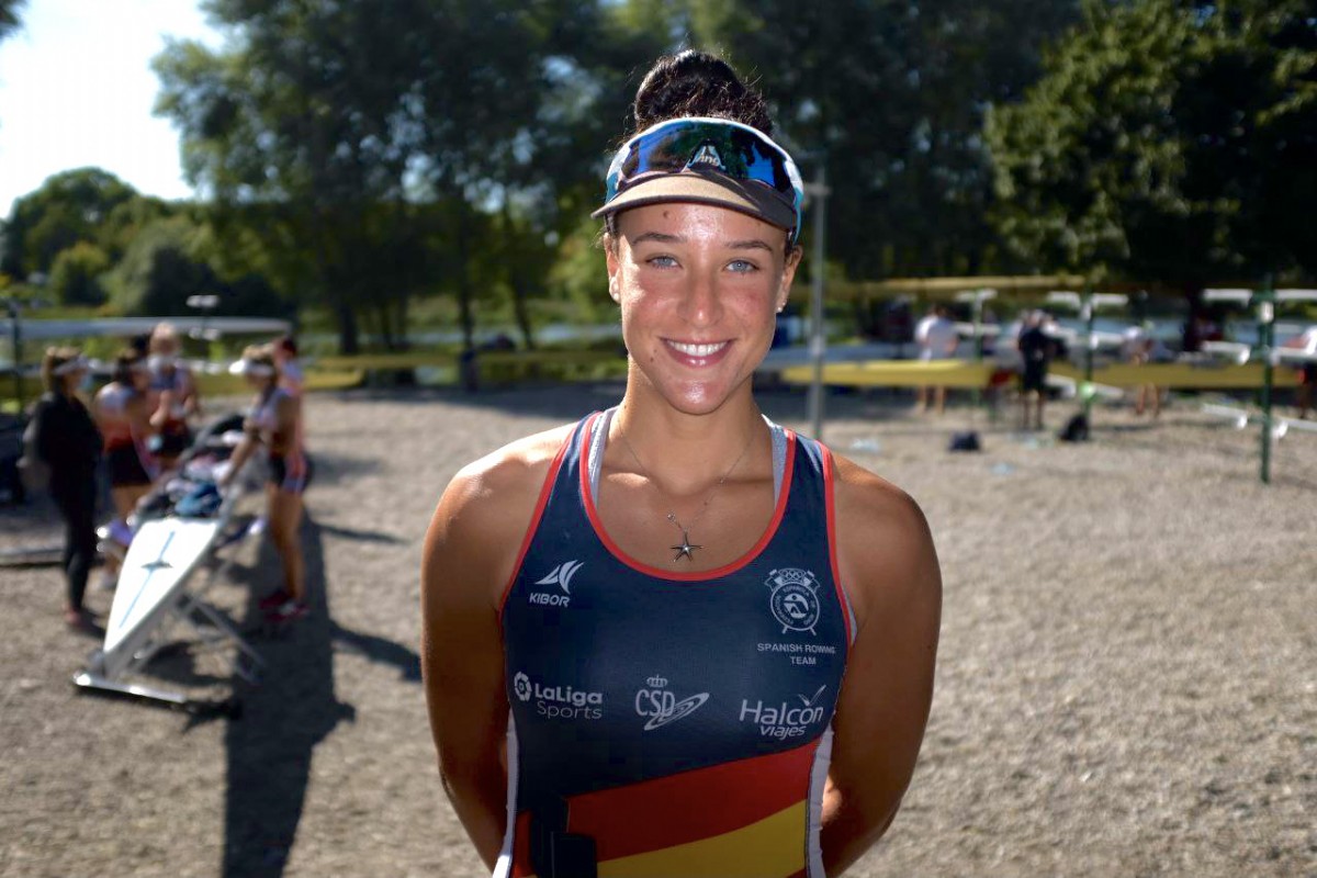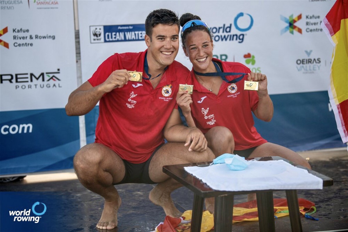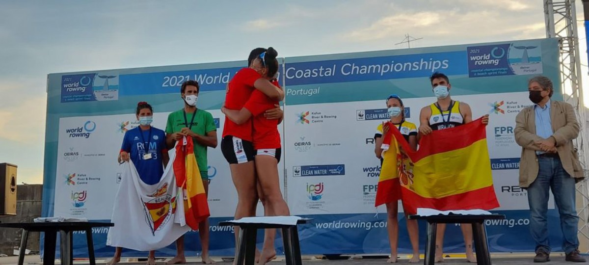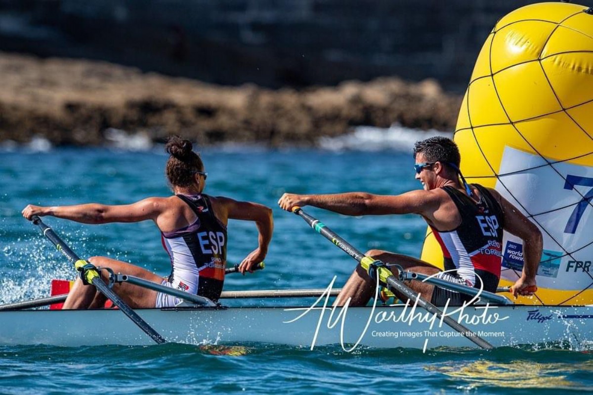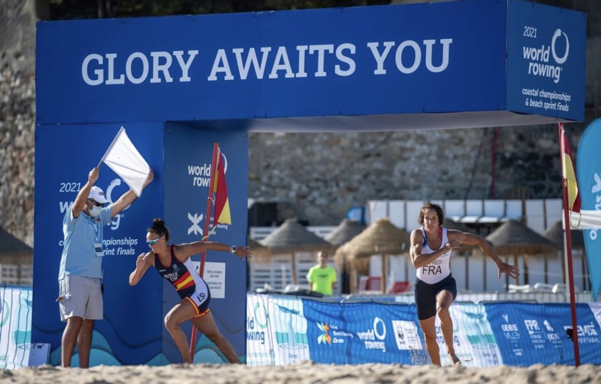Campeona del Mundo de Beach Sprints o remo de mar en doble scull mixto en Oeira (Portugal)