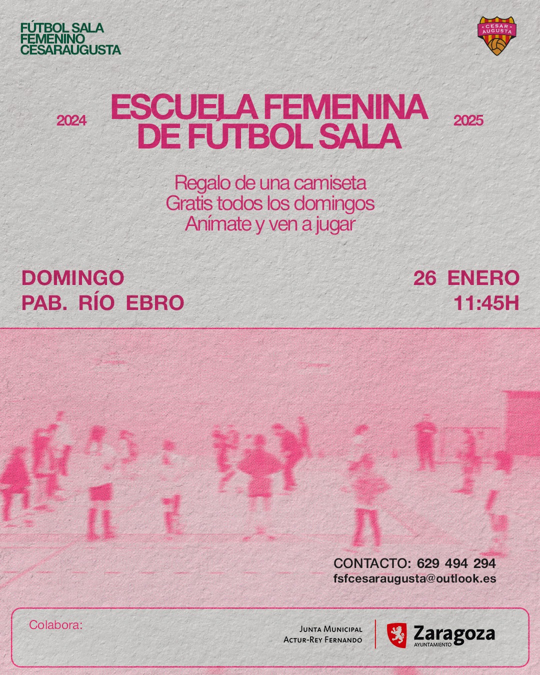 | Totalmente gratuita y con regalo de una camiseta, tendrá lugar el domingo 26 de enero de 2025 en el Pabellón Río Ebro, organizado por el club F.S.F. Cesar Augusta. |