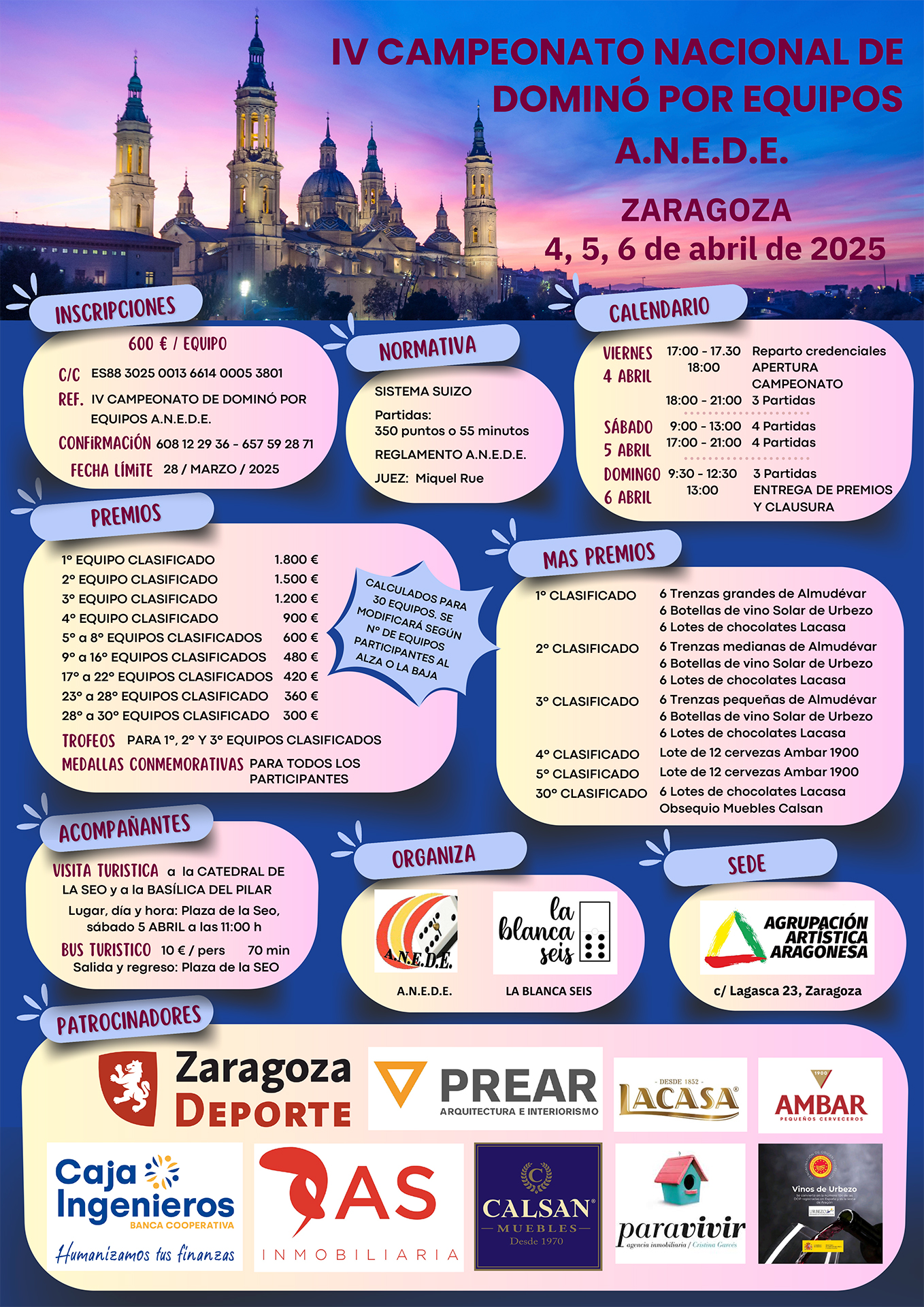 | Tendrá lugar de 4 al 6 de abril de 2025 en la Agrupación Artística Aragonesa (calle Lagasca). Está prevista la participación de unos 200 jugadores. |