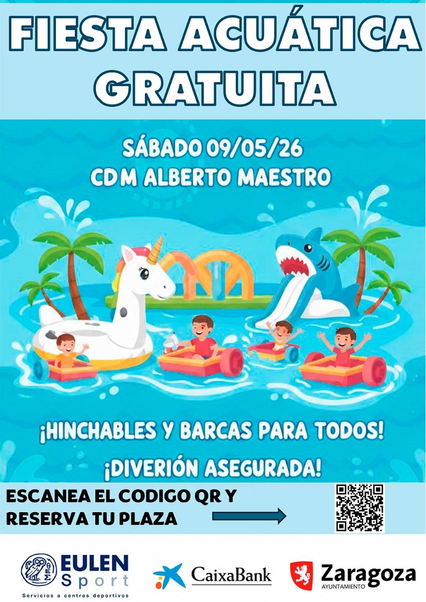 El sábado 9 de mayo de 2026, la piscina cubierta del CDM Alberto Maestro se trasformará en una zona de divertidos juegos acuáticos, hinchables gigantes y talleres lúdicos. Actividad gratuita, previa inscripción obligatoria. Plazas limitadas.